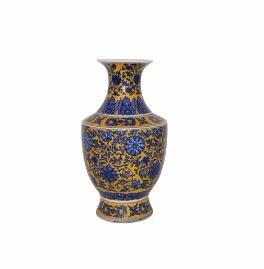 藏品知识介绍:黄地青花缠枝菊花观音尊