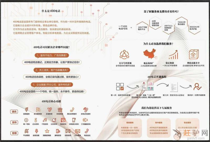 400电话是全国唯一十位数虚拟热线号码,无需安装设备,只需要绑定企业现有的通讯资源(座机、手机)既可(最多可以绑定200部)。400号码是企业终身号码,提升企业形象,电话不占线,搬家不变号,可以自由更换转接的号码。办理400需要的资质:执照、法人身份证、公章、绑定号码的缴费凭证(充话费的发票)赶 驴 网